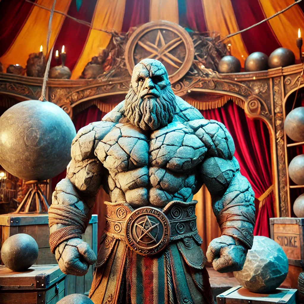 In zijn strongmanshow is hij enkel nog maar door een halfreus en een goliath, die beide toch onder de indruk waren van deze versteende mens.