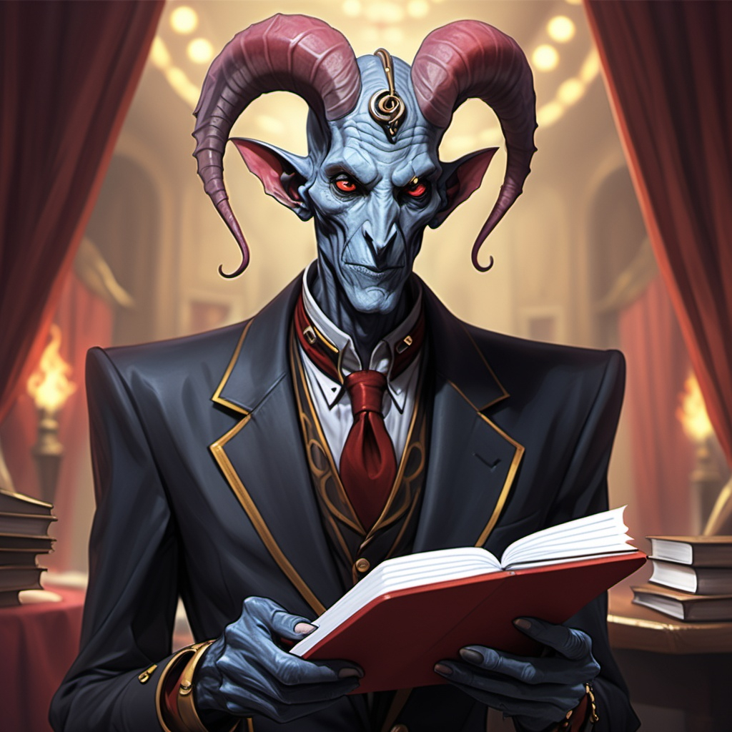 Steeds noterend in zijn notitieboekje zal deze tiefling geen enkel detail aan zich voorbij laten gaan.